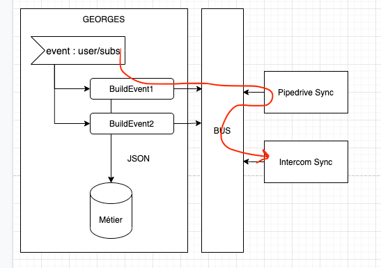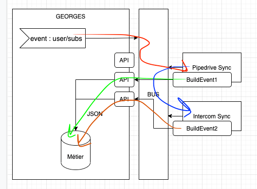 Typiquement si demain on ajoute un nouveau CRM, il doit pouvoir écouter les évènements existants, faire sa propre synchro et en cas de crash, le faire sans impacter les autres services. En particulier le produit où se trouvent les clients.