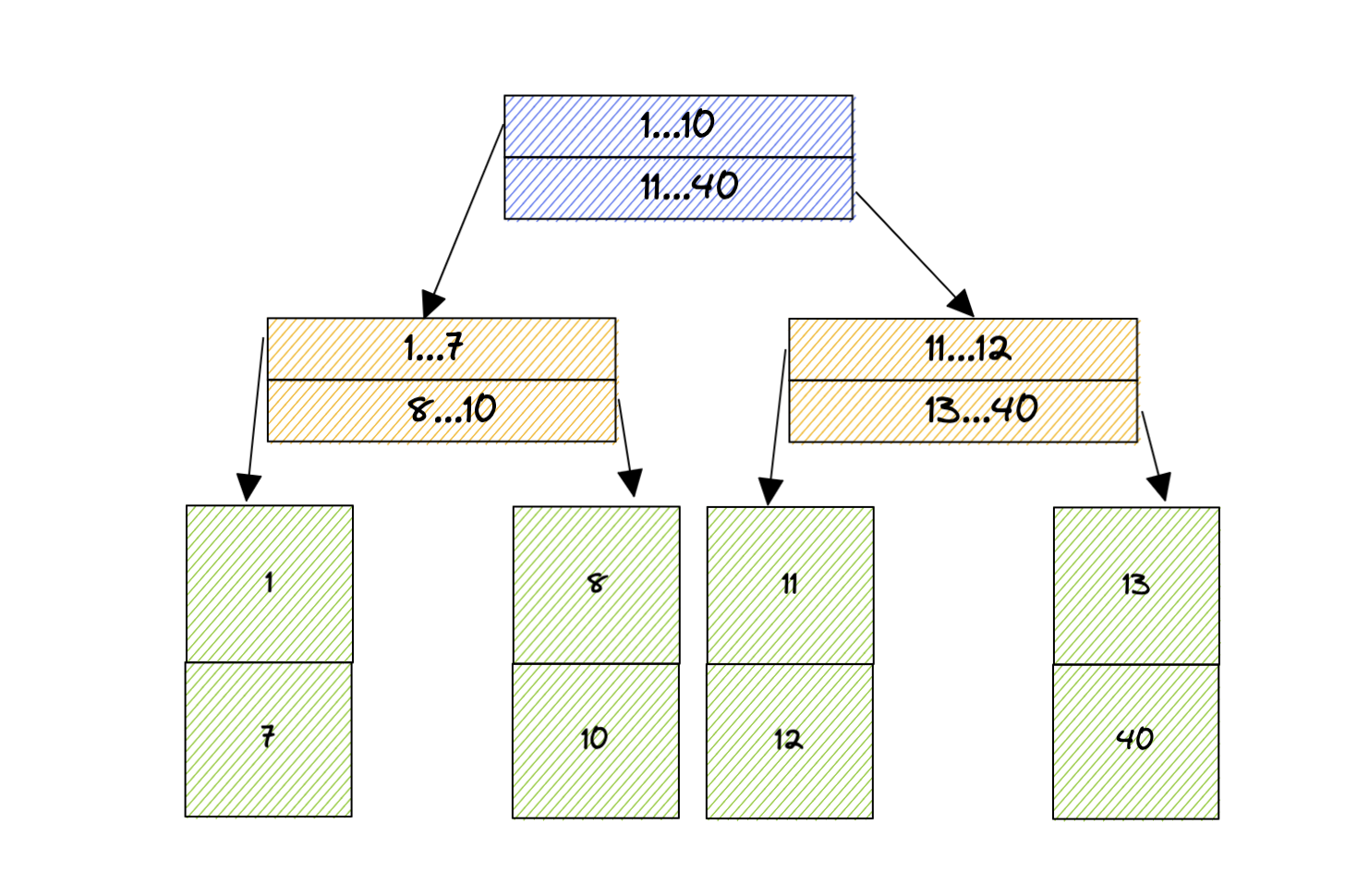 Etant donné l’étendu de la littérature sur les B-tree, nous ne nous étendrons pas trop dessus. Pour mémoire, le fonctionnement du B-tree est le suivant