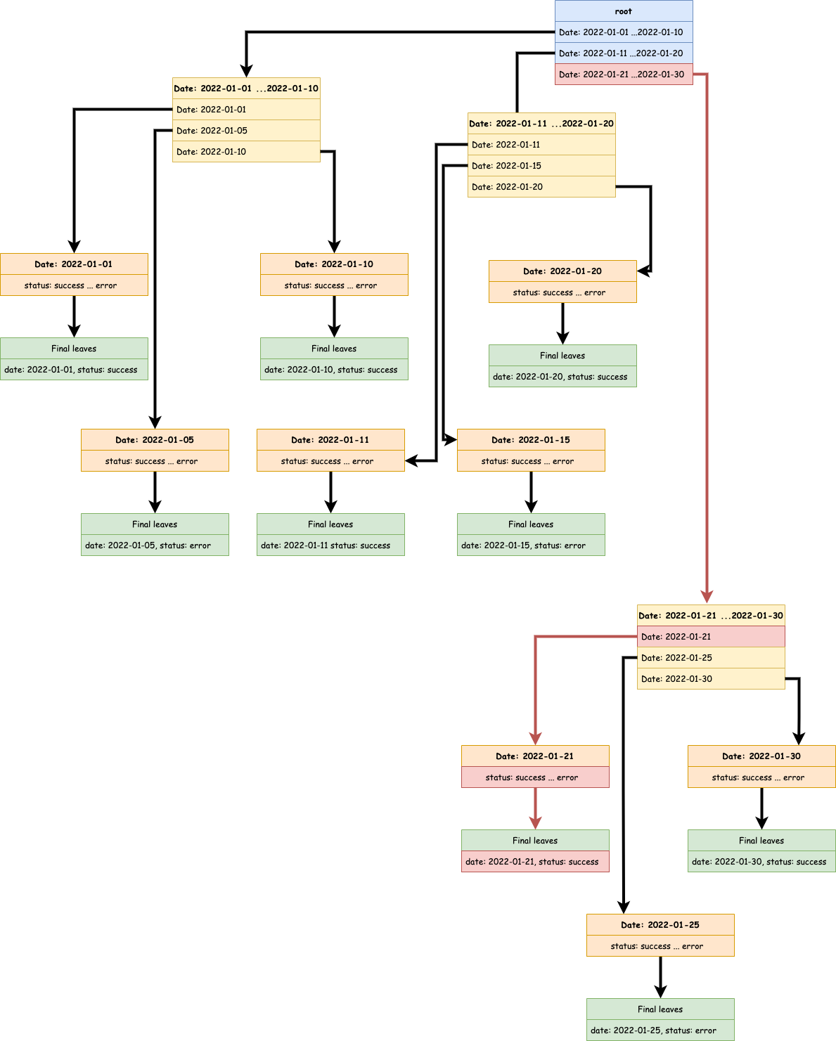 Si je veux récupérer le run du 21/01/2022, je vais exécuter le trajet suivant (en rouge).